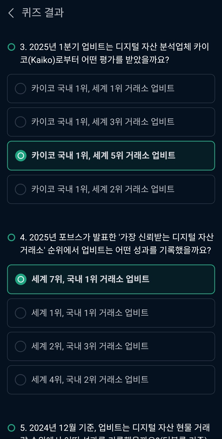 4. 2025년 포브스가 발표한 '가장 신뢰받는 디지털 자산 거래소' 순위에서 업비트는 어떤 성과를 기록했을까요?