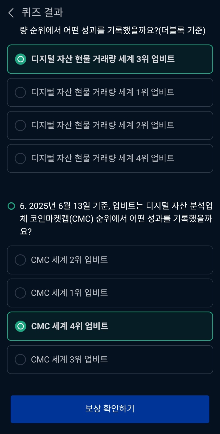6. 2025년 6월 13일 기준, 업비트는 디지털 자산 분석업 체 코인마켓캡(CMC) 순위에서 어떤 성과를 기록했을까요?